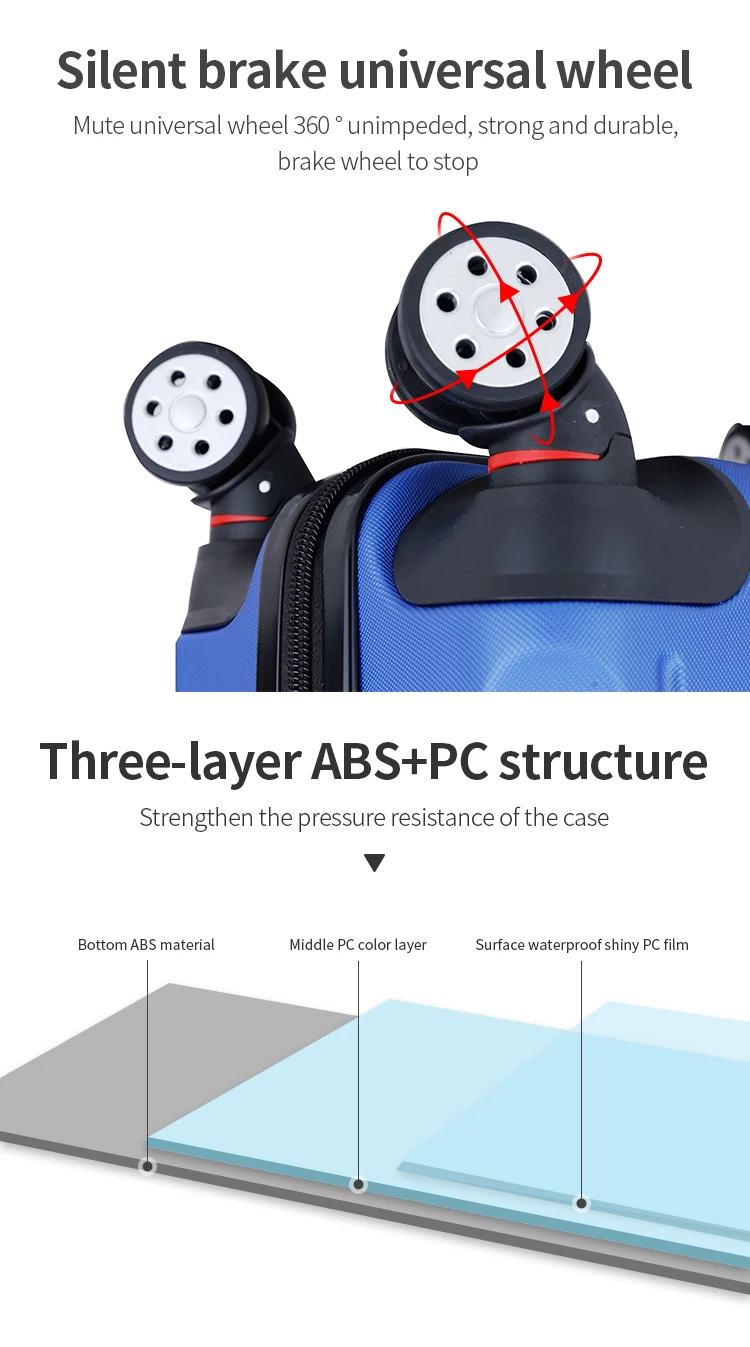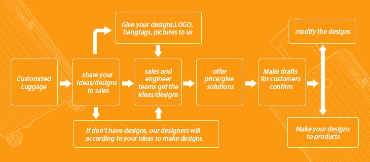 We have own designers, OEM/ODM service accepted, and we also do many customize projects for our customers! You can just share ideas, our teams will make the design picture according to your ideas, then send to you for confirmation, finally make ideas to real products. Can customize your Brand Logo on luggage shell, Handle, Trolley, Lining, Wheel, Zipper,etc.