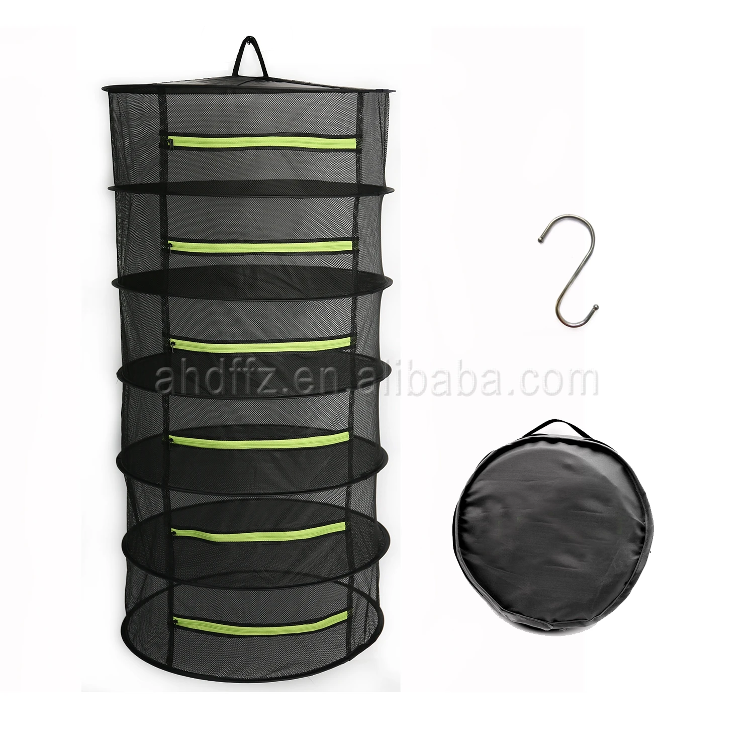 This hanging net is usually used for drying plants, herbs, fishes, meat, foods and so on, made of special eco-friendly breathable polyester mesh and built-in steel wire ring for steadiness. Quick and easy to set up and take down wherever you are hanging it indoor or outdoor, it can attach to the ceiling or even inside a grow tent to form an instant self-contained drying chamber to dry what you want. The semi-enclosed design is also easy to put in or take out what you want to dry and against the wind blow away with 4/6/8 durable and large capacity layers.