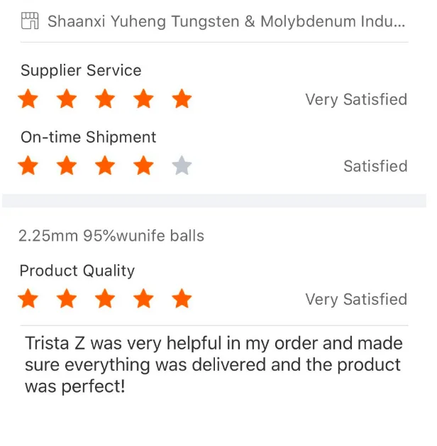 Customer's positive feedback when they received our goods- high density tungsten balls