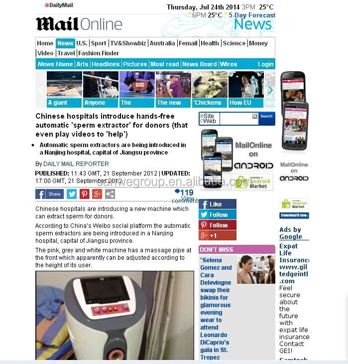 1 | The device can simulate the environment of women’s vagina which makes the patient feel comfortable in the process of collecting semen. | |