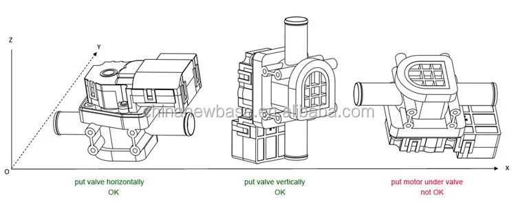 Install the water valve horizontally or vertically, don't keep the motor actutor under valve body in case of any water leakage.