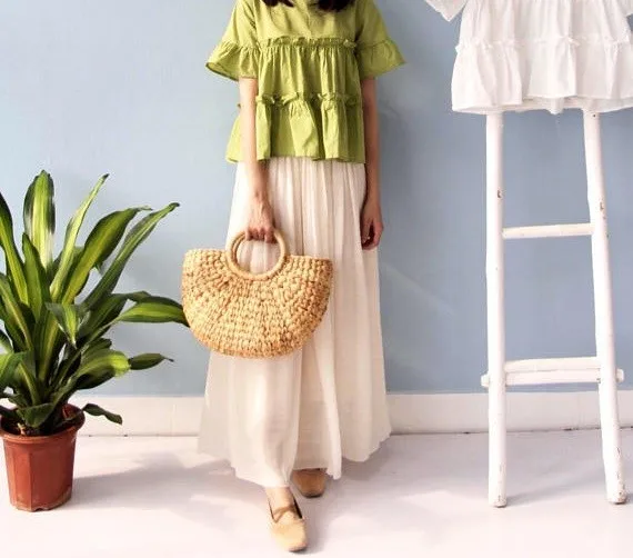 Our straw bags are handcrafted using natural water hyacinth, a type of strong and durable vine that allows for very fine weave. After the bags are woven by hand, they are dried under the sun for a few days. The color of the bag can be customized following your requirement.