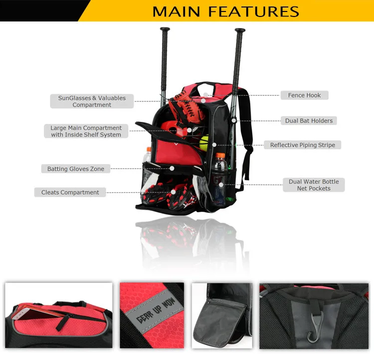 ★ Heavy-duty zippers on all softball backpacks' pockets ;