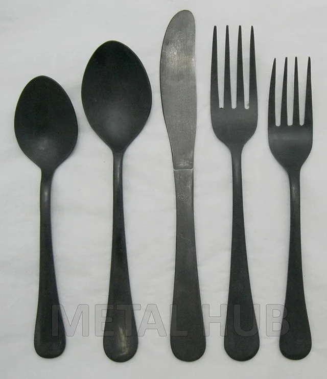 Food safe matte black metal steel cutlery set 20 pieces