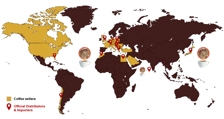 Beside a solid local presence in Italy, our coffee reaches Europe and North America, and we are recently being distributed in Japan, Maldives, Chile, Morocco and Egypt. We are currently entering the Middle-East market and we expect to keep growing and developing distribution channels.