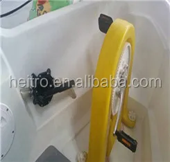 Advantage | 1.Polyethylene material: Using imported polyethylene material, the material is impact resistance, high density, and uv protection. The boat is light weight, high safety, maintenance free, long service life, etc. 2.Drive system: The driving system is special designed. The variable speed is 4:1 and the speed can reach 10-12km/h. It's a good choice for couples and families. 3.Rust-proof and anticorrosion: The hull, drive system and chairs is plastic, so it's anti-corrosion and won't get rust. 4.Keel: Very stable and provide protection for the propeller. 5. Steering sensibility: The design of the large rudder can turn the boat at 180 degree. 6. Environment protection: The PE material is recyclable and no pollution. 7.Chairs: The seats have cushioned design, which is more soft and comfortbale. 8. Quiet performance: driven by propeller, it won't disturb wildlife, it's a good choice for entertainment. | ||||