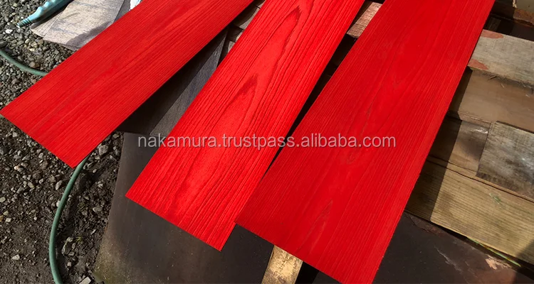 There is no big difference in the hue of the dyed Japanese cedar and Hinoki cypress. Since the Hinoki original material color is whitish, the Hinoki is relatively easier to dye than the Japanese cedar. What's more, strangely, the fragrance of the dyed cedar and cypress tends to be stronger than the their veneers before it`s dyed.