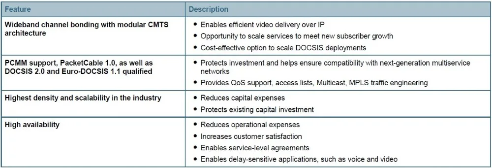 With the Cisco uBR10012, cable operators can deploy advanced cable IP services while supporting a large variety of applications, including: