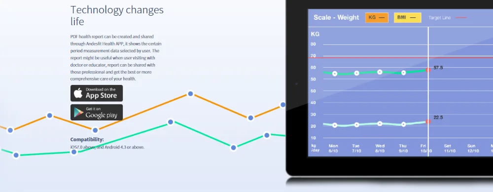 Andesfit is the brand with creative and energetic characters, creating smart devices and making our own APP that let you can track and improve your health everyday in a simple way and targeting for long term health.