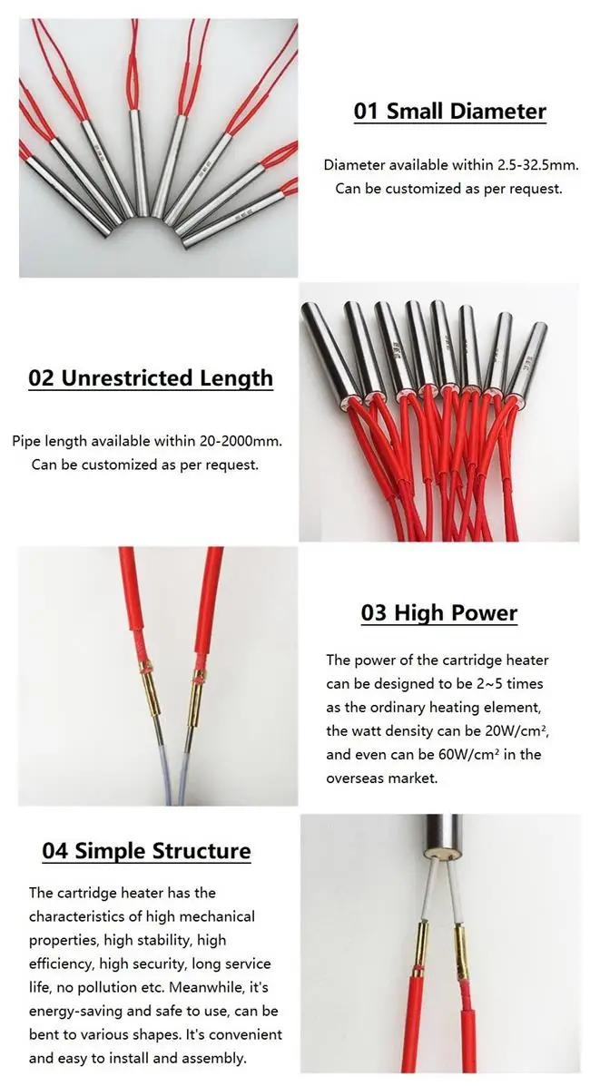 Friendly reminder: We are factory directly sale. Customized services are available.We can offer cartridge heater from diameter 2-35mm,can be any length. If you need to consult custom, please contact customer service as follows.