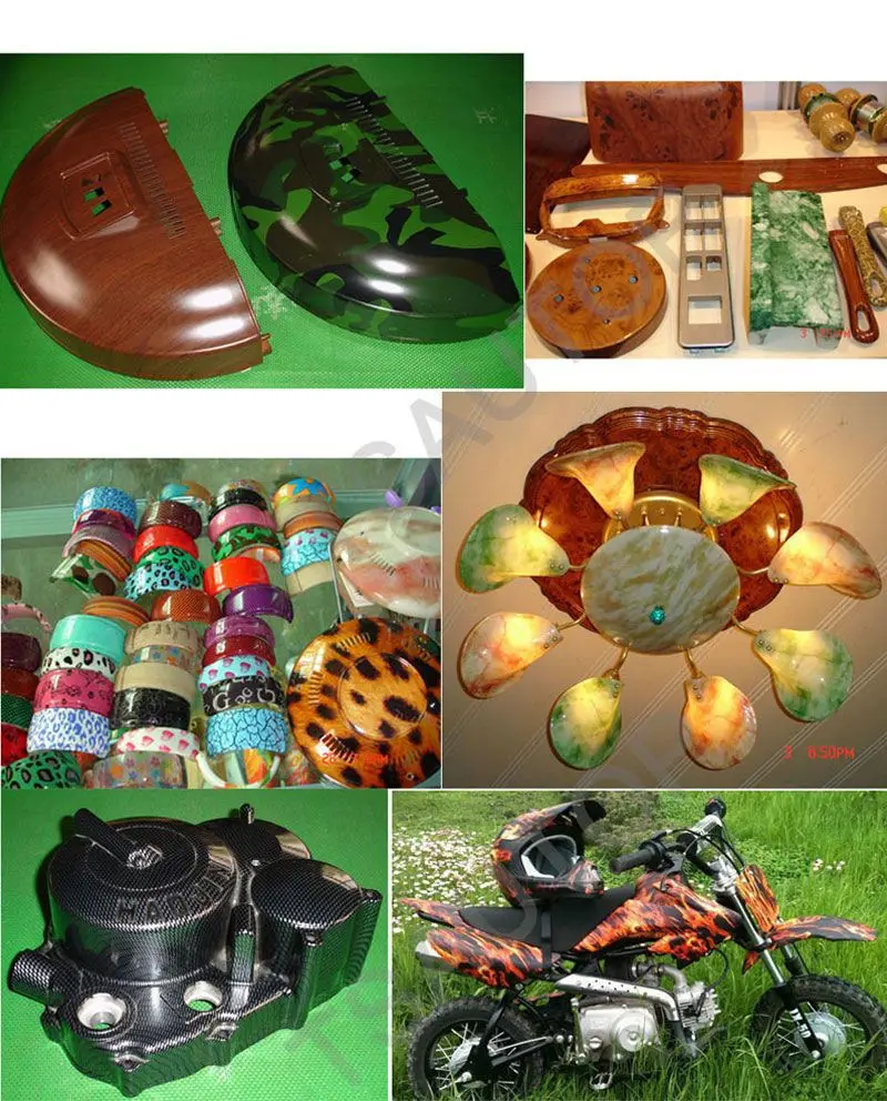 | Application | Decorate items that range from entire all-terrain vehicles and car dashboards to small items, like bike helmets or otherautomotive trim, Car Interiors, Xbox, Guns, Cups, Car Parts, Mouse,Motorcycle. Films can be applied to all types of substrates including plastic, fiberglass, wood, ceramics, and metal. For the most parts, if the item can be dipped in water, the hydro-graphic process can be used. |