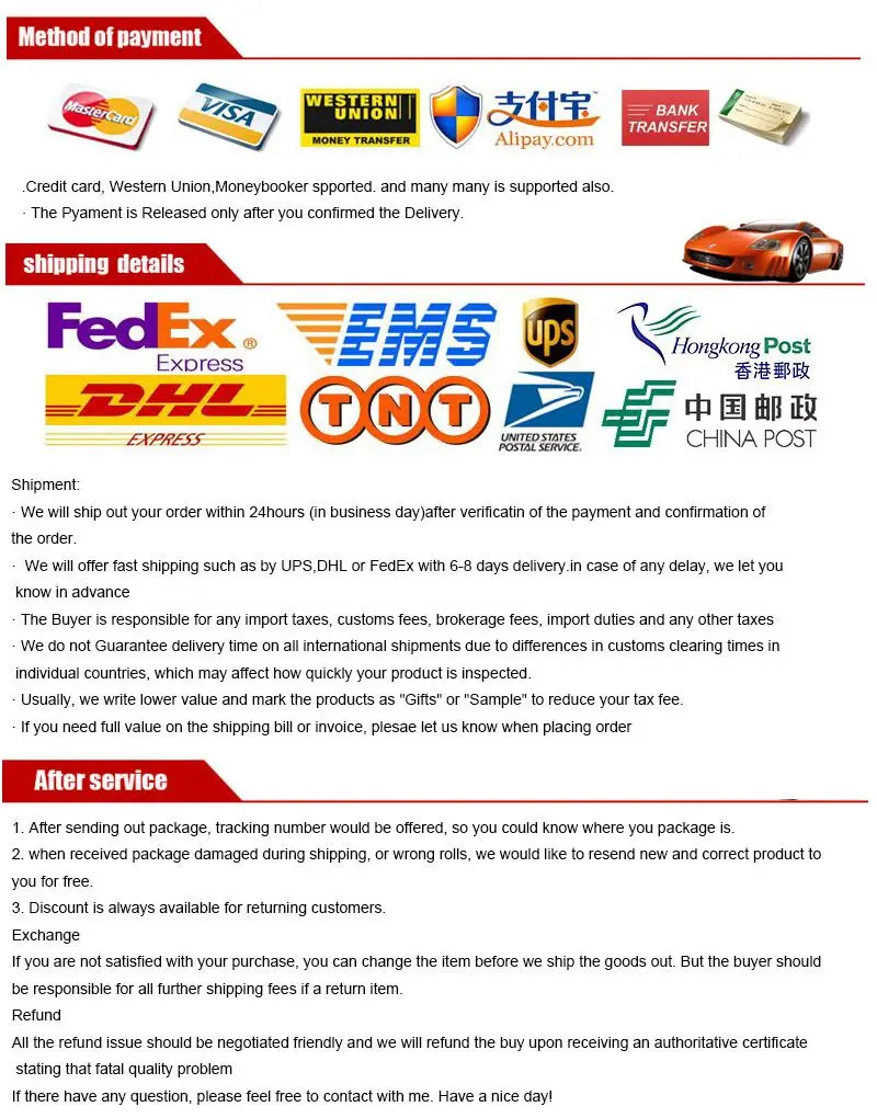 Goods are well proteted by proper packing materials.Unit roll packed in one polybag and the bag is protected by air bubble bag,then outside with the export hard carton.