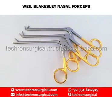 BELLUCCI Alligator Ear Forceps, HOUSE Alligator Forceps, HOUSE Micro Forceps, NOYES Ear Forceps, Alligator Ear Forceps, HARTMAN-HERZFELD Ear Forceps, HOUSE Miniature Ear Forceps, HOUSE Oval Cup Forceps, Ear Forceps, WEIL-BLAKESLEY Nasal Forceps, GRUENWALD Nasal Forceps, HARTMAN Nasal Dressing Forceps, LUCAE Nasal Forceps, TAKAHASHI Nasal Forceps, WEIL Nasal Forceps, MCKENTY Sphenoid Punch Forceps, MELTZER Adenoid Punch Forceps, RONIS Adenoid Punch Forceps. LEIVERS Vent Tube Introducer Forceps, OSTRUM Antrum Punch Forceps, Sinus Cup Forceps, Antrum Punch Forceps, WATSON-Williams Nasal Forceps, WILDE Nasal Forceps, Pediatric Ethmoid Forceps, STUEMPEL-VOSS Nasal Forceps, WILDE Ethmoid Nasal Forceps, Sidebiting Antrum Punch Forceps, Pediatric Ostrum Antrum Punch Forceps, Rotating Ostrum Antrum Punch Forceps, Pediatric Rotating Ostrum Antrum Punch Forceps, Frontal Sinus Forceps, Giraffe Type Sinus Forceps, Thru Cutting Giraffe Forceps, Antrum Punch Forceps, KLEINSASSER Micro Scissors, Nasal Scissors, SOFFERMAN Needle Holder, HOUSE-DIETERS Malleus Nippers, Rongeurs.