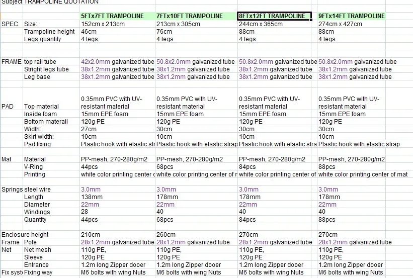 a. Trampoline legs:hot galvanized both inside and outside , and then do powder coating again . And 4 "W" legs, more stable and safety.