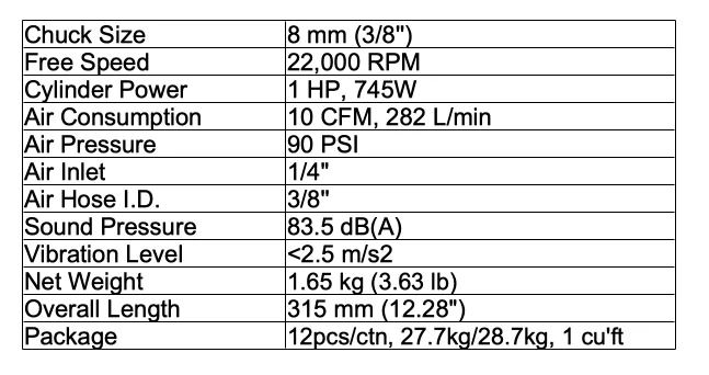 *This die grinder is available with 16'' (406mm) and 33'' (838mm) extension