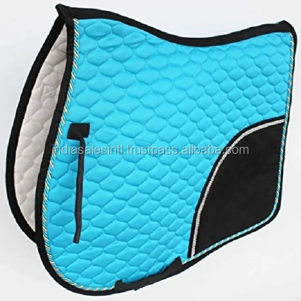 Filling: 10MM Foam high density and 200GSM Polyfill. Binding with Double cord trimming 6mm and 3mmrope binding. Size: All sizes are available. Color: Black, White, Navy Blue, Royal Blue, Purple, Beige, Hot Pink, Baby Pink, Sky Blue, Burgundy, Turquoise. Logo Embroidery possible as per buyer brand. We thought about what we want, as riders, when we're shopping for saddle pads. Then we brought it to life. Outstanding quality, classic styling, and unbeatable prices. Perfect for schooling.