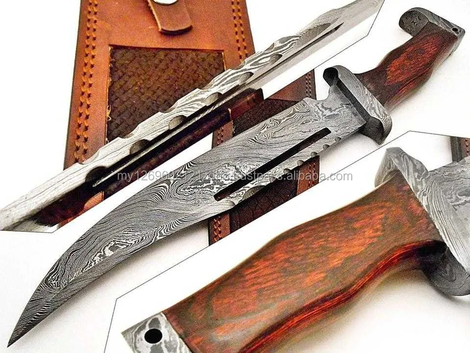 Custom Handmade Damascus Steel Hunting Bowie Knife