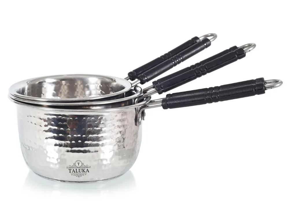 • Stainless Steel Saucepan Color: Silver, Material: Hammered Stainless Steel, Height: 4.0" Inch, Diameter: 7.8" Inch, Volume: 0.75 Liter To 2 Liter Available, Weight: 550 Gram