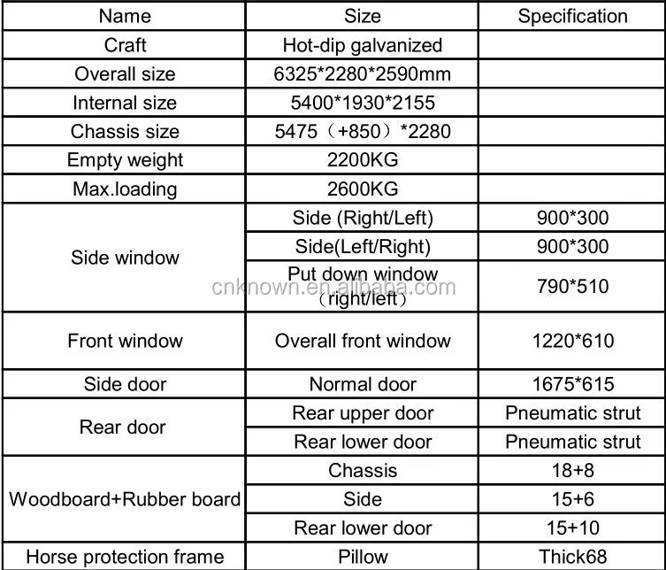 KNOWN horse trailer is a special transport vehicle for equestrian events. It is equipped with ventilation and ventilation device, skidproof floor, harness box and protective soft bag, and can be installed with air conditioning, water tank, sunshade canopy and wireless video monitoring system according to customer needs, so as to provide a safe and comfortable transportation environment for horses.