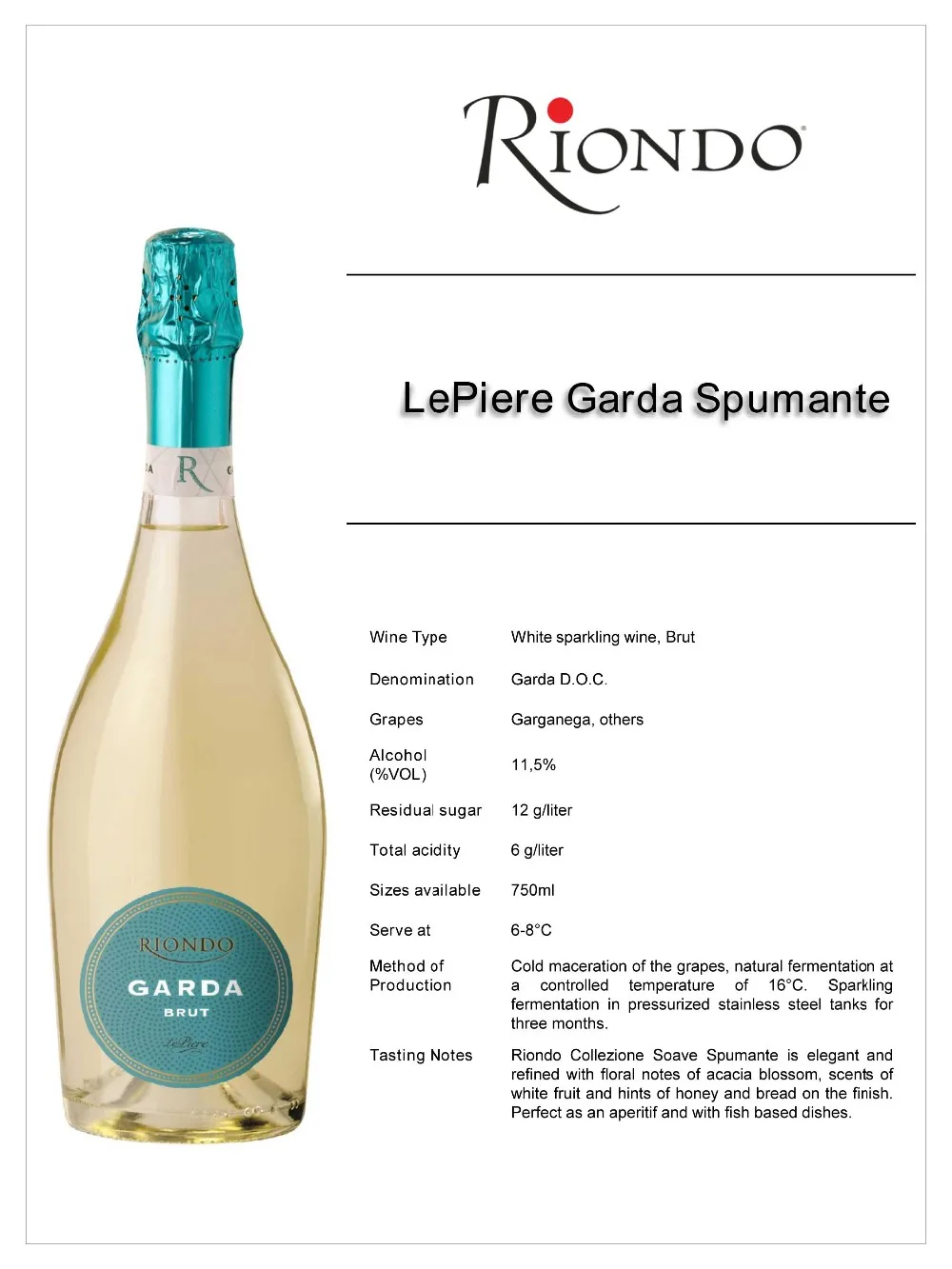 Sparkling fermentation in pressurized stainless steel tanks for 1 month.