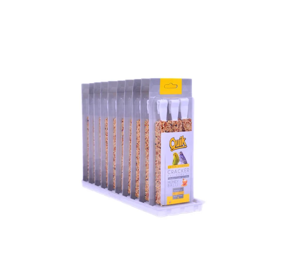 For the budgerigars, there are three honey crackers that contain the nutrients they need.