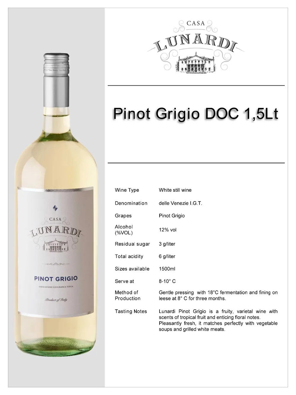 Cold maceration of the grapes, natural fermentation at a controlled temperature of 16 °C.