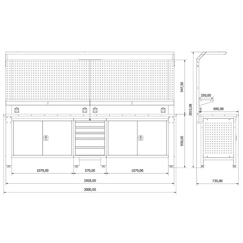 - All drawers and covers are lockable.