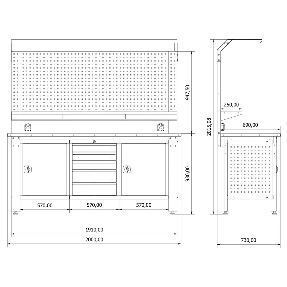 - All drawers and covers are lockable.