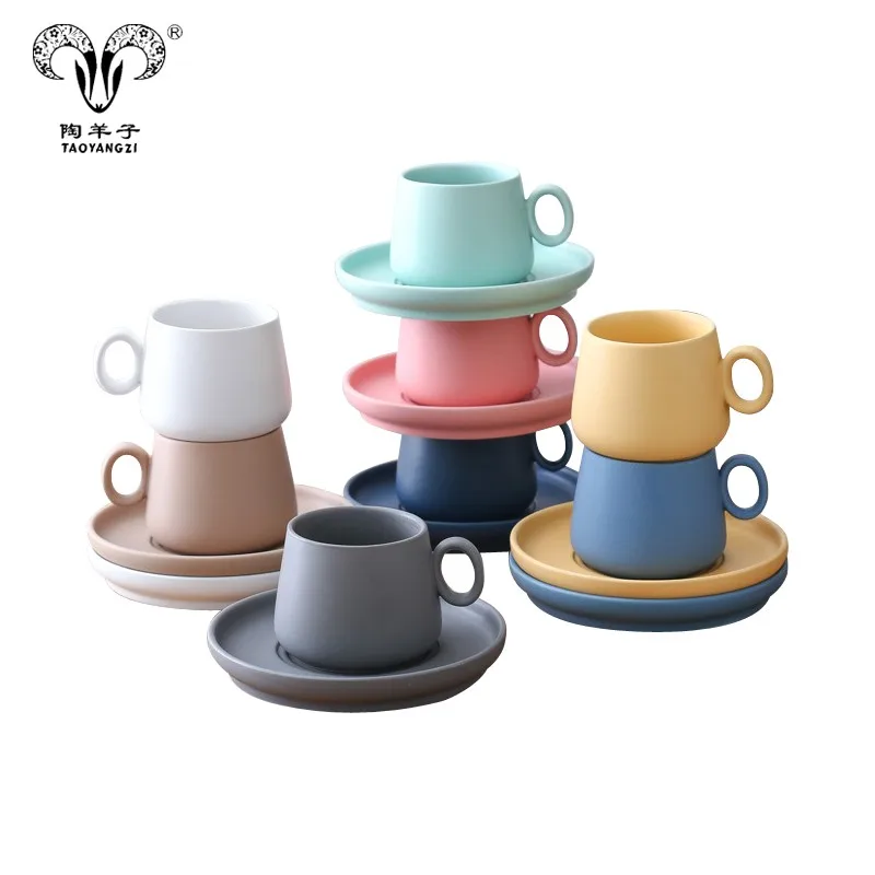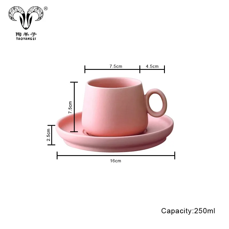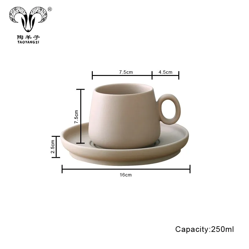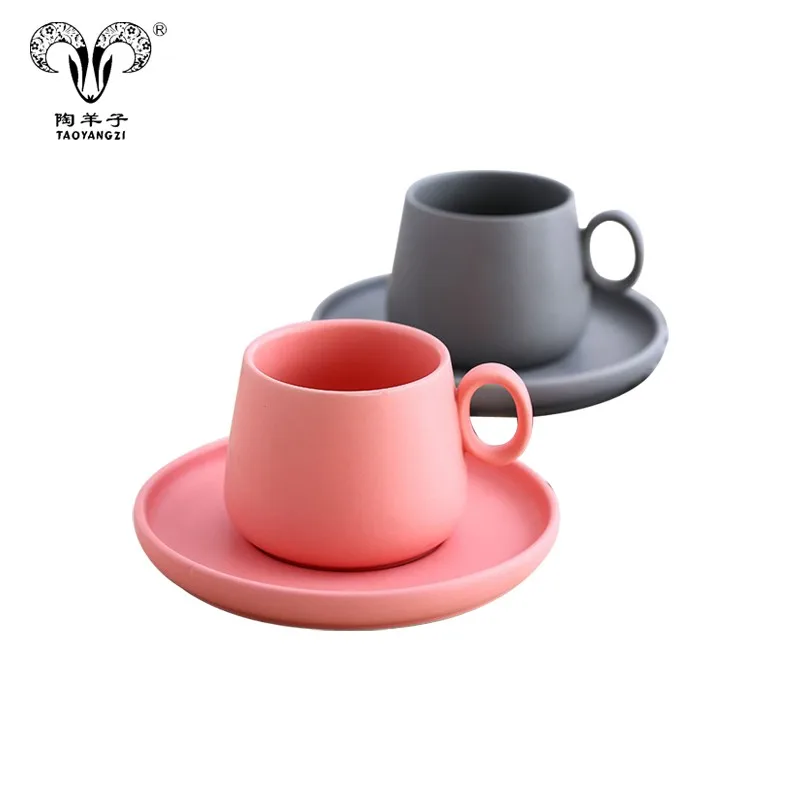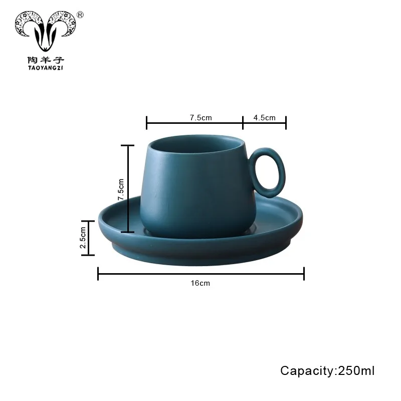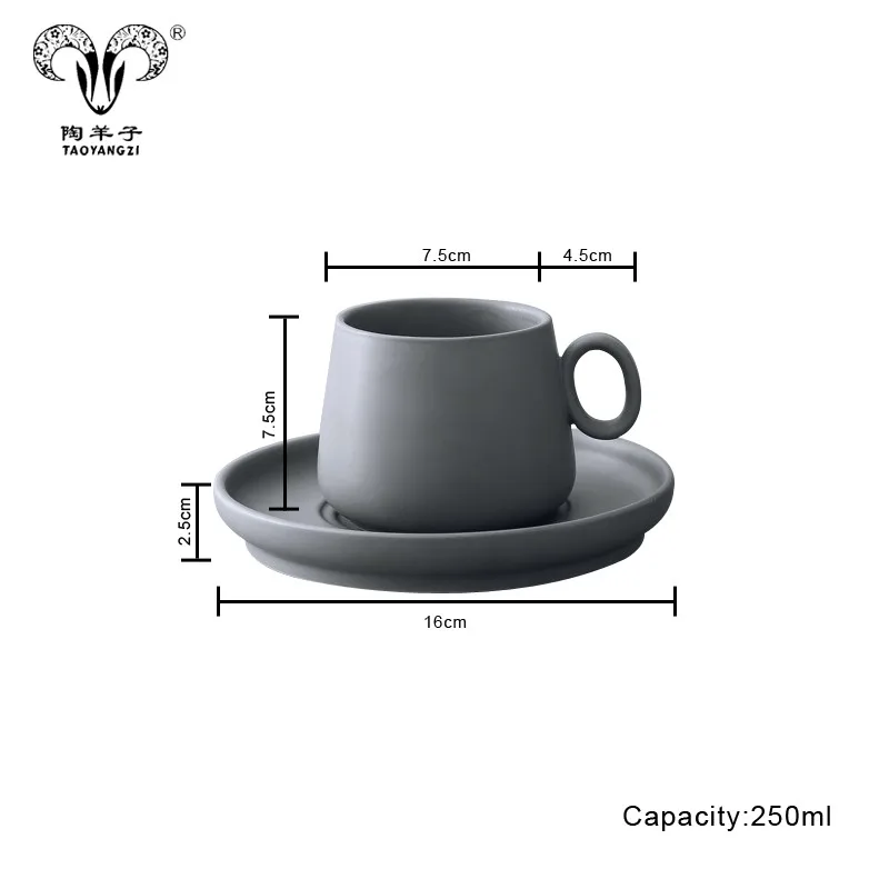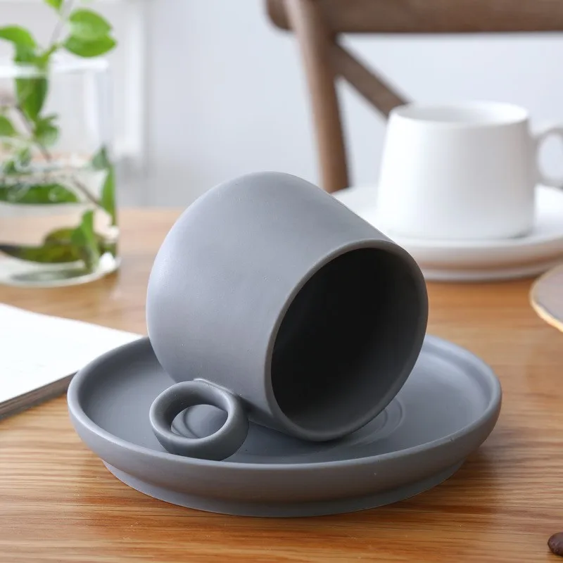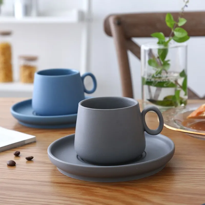 Nordic Simple European 250ml Ceramic Cup Coffee Cup and Saucer Office European Coffee Set/matte porcelain coffee set