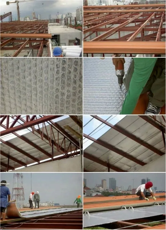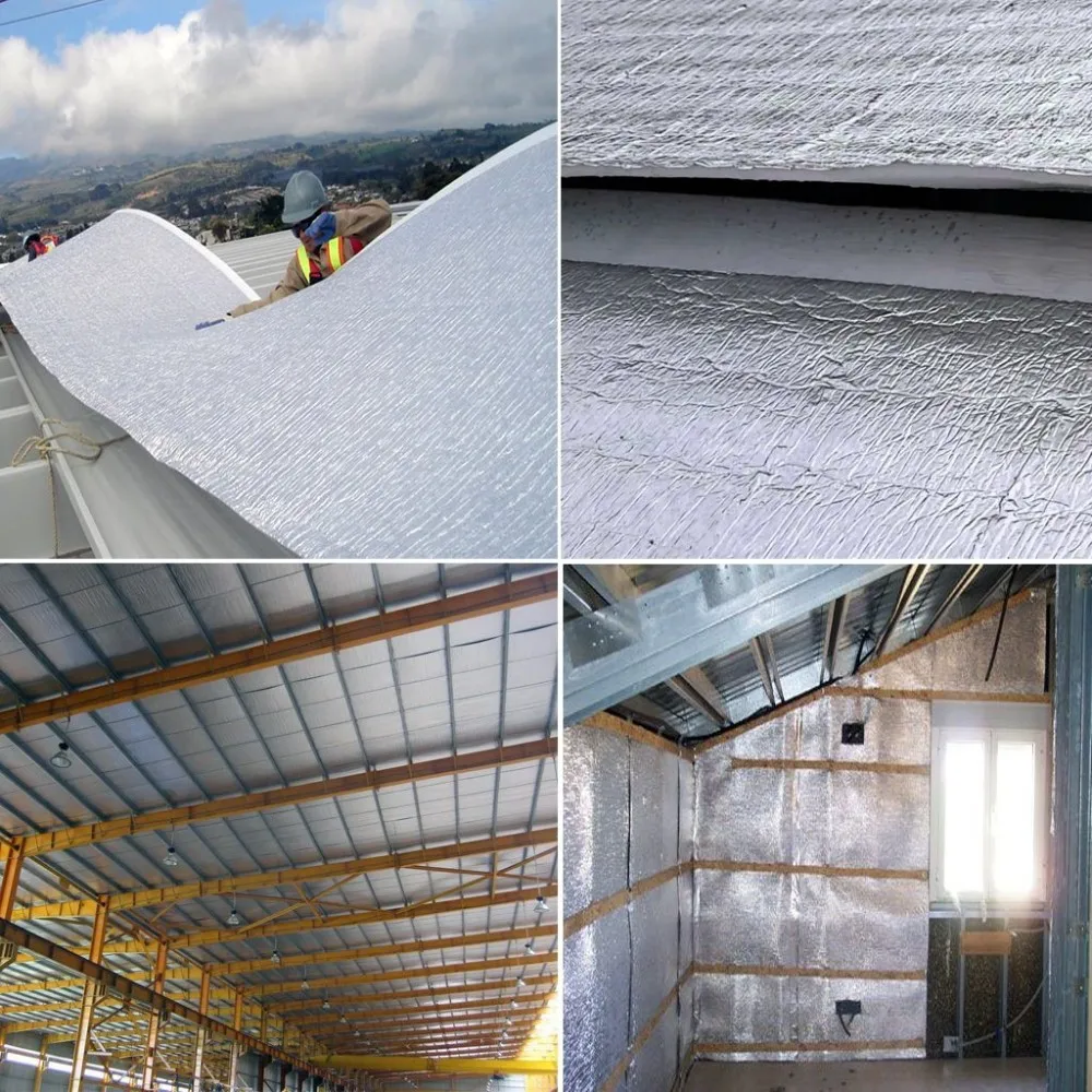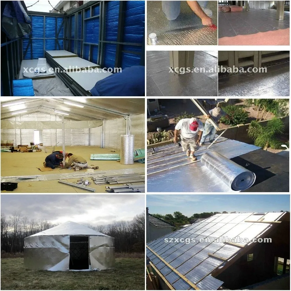 The aluminium foil plays the role of reflecting radiation heat from sunshine with reflectivity of 96-97%. And the foam has the function of trapping air so as to stop convection heat. In response to customer's flame retardance requirement, our foam can be made fireproof so that this product will not easily catch fire and will not encourage fire when fire hazard happens. Our product has passed AWTA's test in thermal conductivity and fireproof performance.