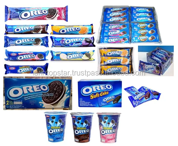 Oreos are black biscuit-shaped snacks and have cream in them. Oreo initially has a white color. However, the more days, the innovated oreo becomes present in a variety of flavors such as beans, strawberries, oranges, blue berries, and so forth. Oreo is very popular in the world. Even the oreo branding effect extends worldwide. Oreo is not only delicious just eaten, but also delicious mixed on other snacks.