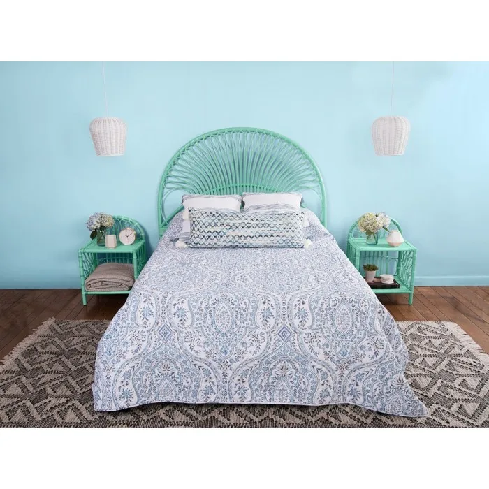 Our size rattan loop headboard is a breath of fresh air in any home. Dress it up or dress it down to compliment your decor style. The mint colored headboard brings the feels of an island paradise to your bedroom.