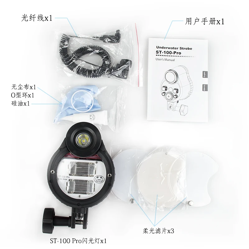 Packing List | Waterproof Housing Case *1 Lens Protective Cover *1 O-ring *1 Neck Strap *1 Wrist Strip *1 Silicone Grease *1 Dust-free Cloth *1 User manual *1 |
