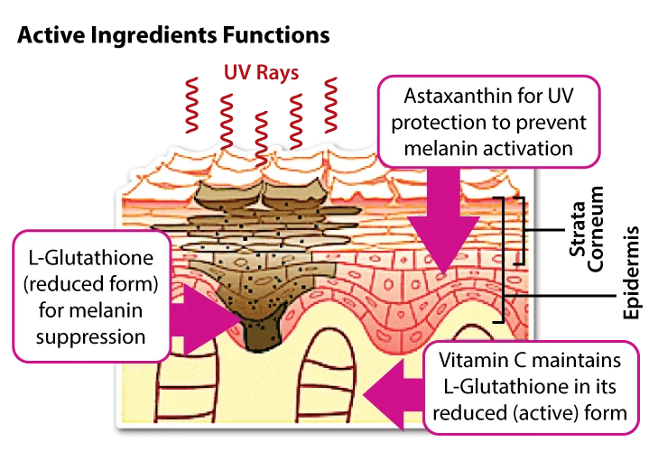 - Maximize skin UV protection effect with Astaxanthin.