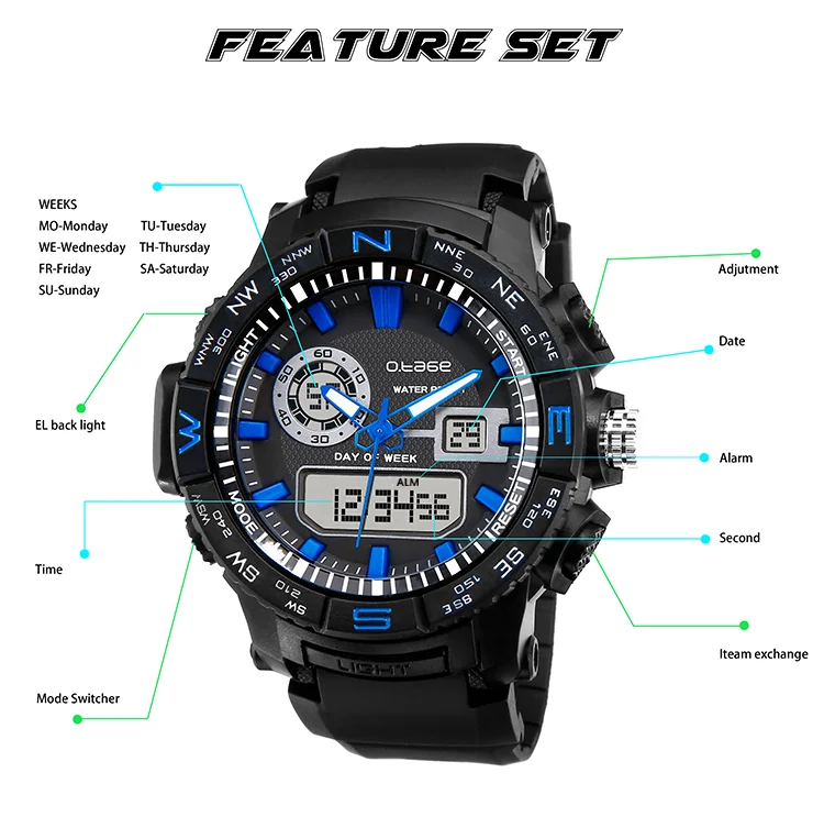 Product Name | relojes 50m waterproof digital sport watch for men digital analog watch | ||||