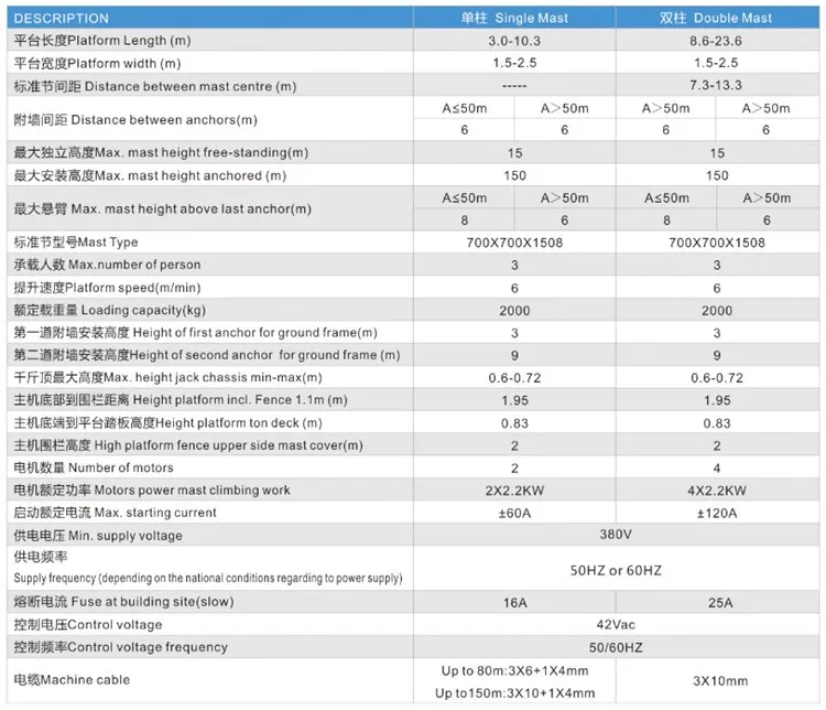 The mast climbing work platform is suitable for the construction of glass wall and the installation and fixation of external wall, especially suitable for ceiling installation of wire and pipe. To some extent, it can repplace high - altitude work basket and scaffolding.It can be widely used in high-rise building exterior wall decoration, glass curtain wall construction, exterior wall and glass cleaning.