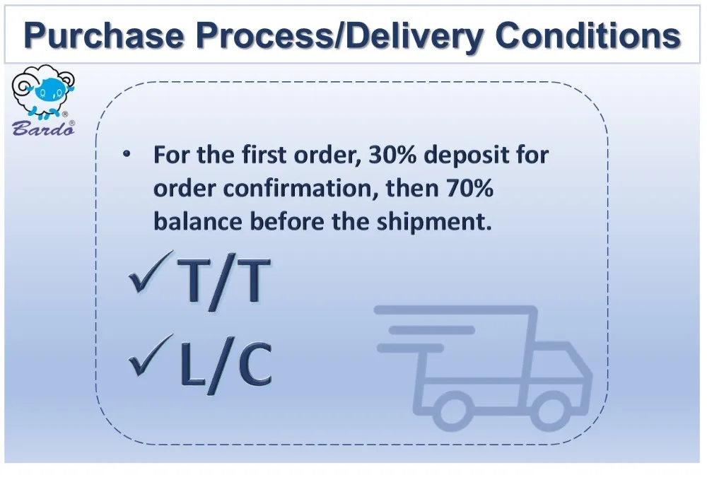30% T/T for confirmation to product, 70% should be paid before the shipment.