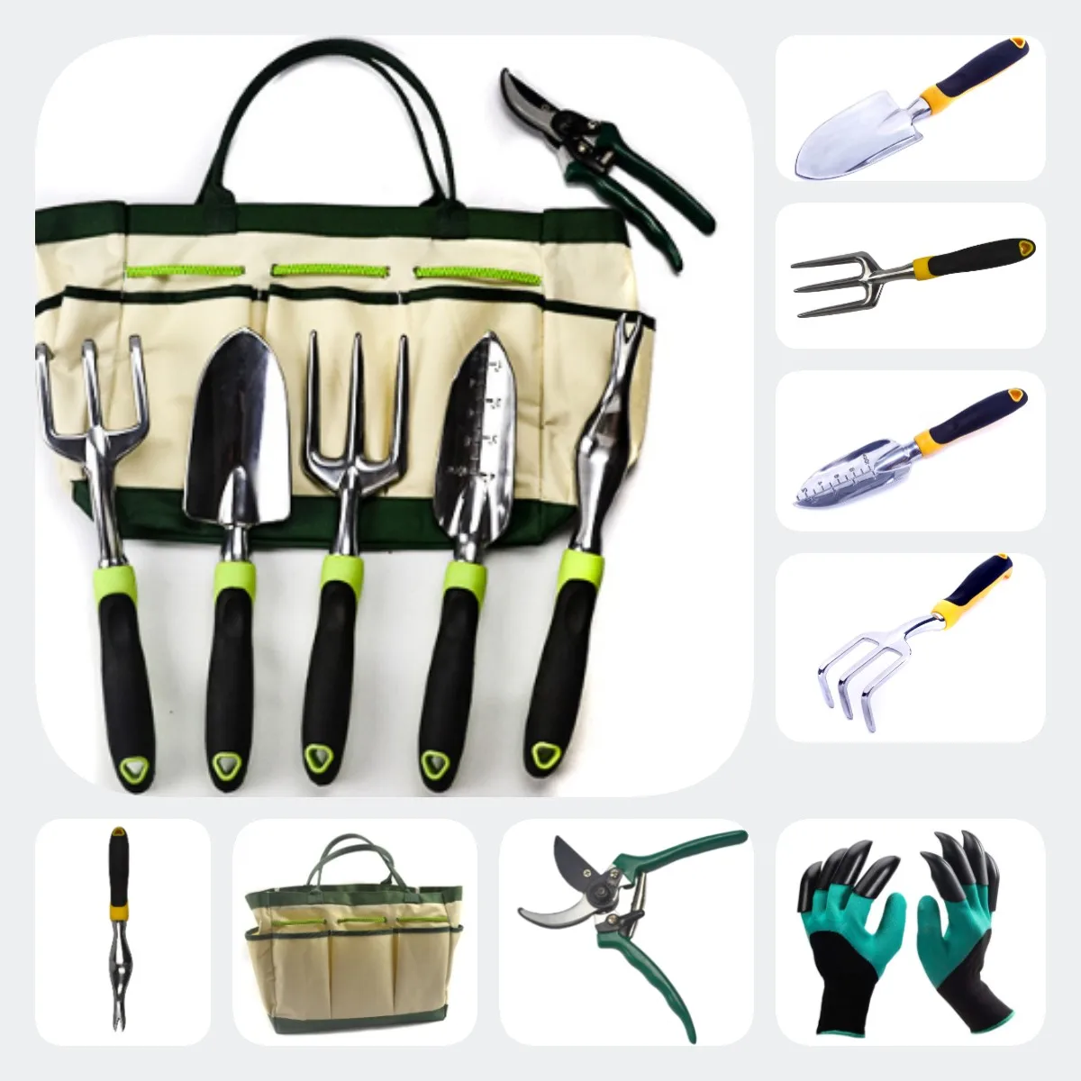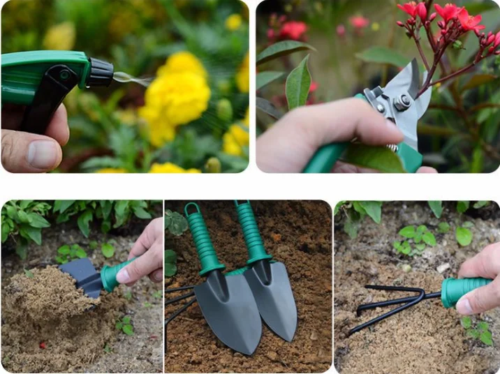 comprisal | trowel*1 shovel*1 rake*1 sprayer*1 pruning shear*1 |