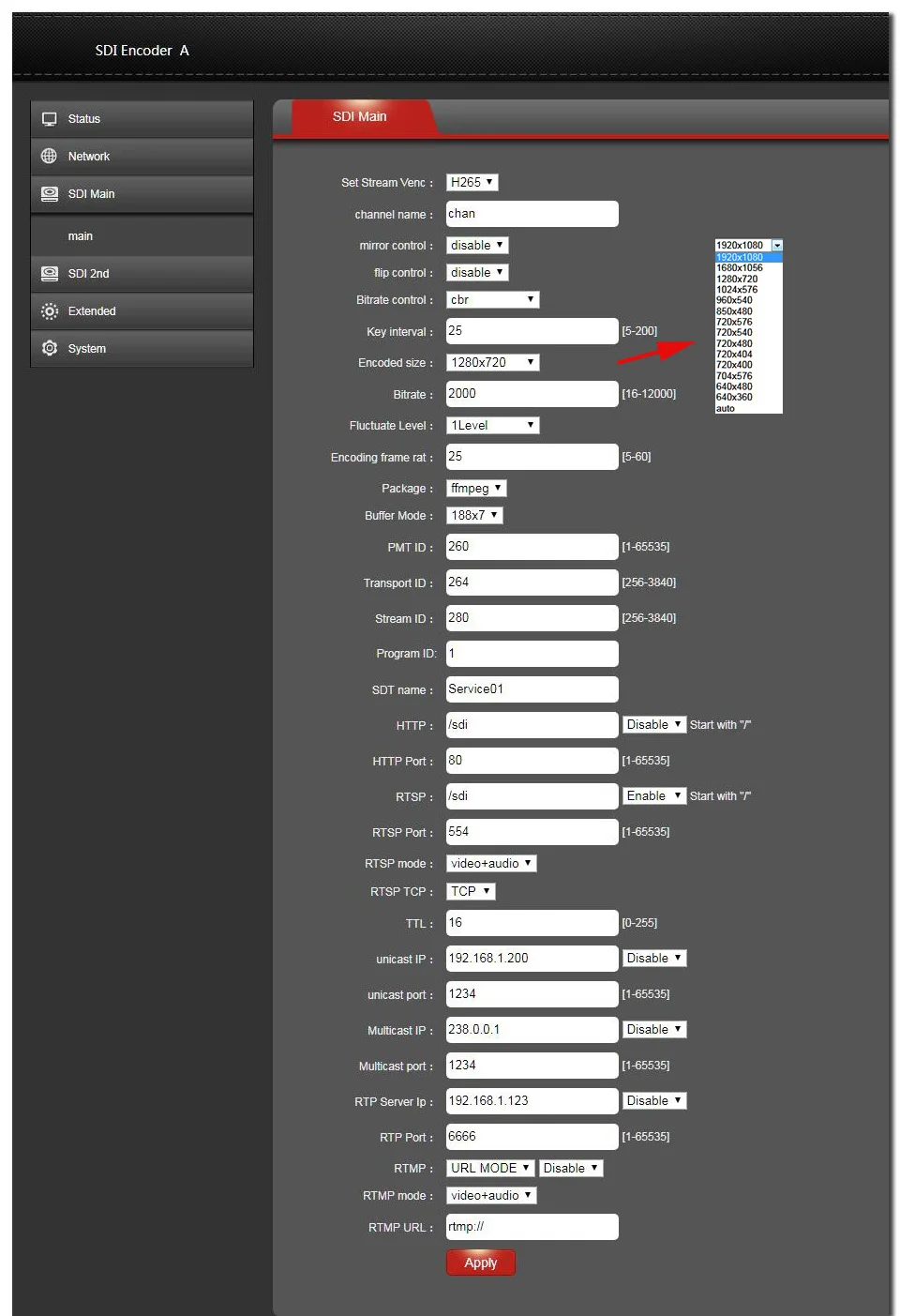 Output | 1 channel IP signal output. RJ45 100M / 1000M,Main TS stream and Sub TS stream, dual-stream |