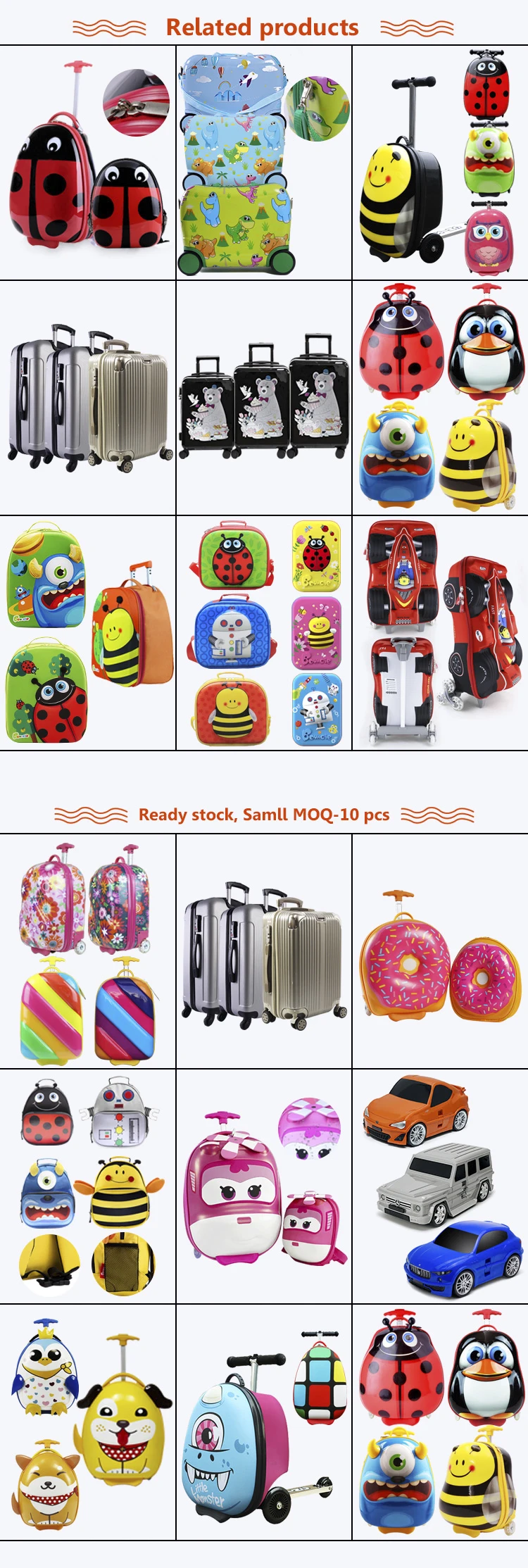 Luggage : single packed in poly bag, usually 2 pcs/outer.