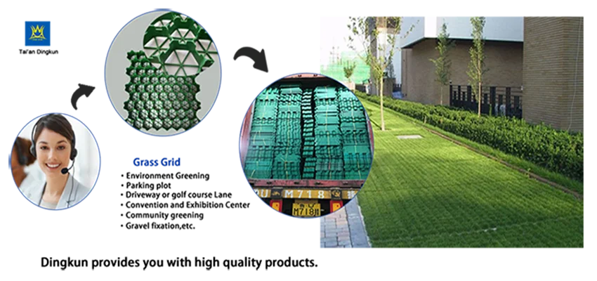 Grass planting grid is mainly used in parking lot, entertainment ground, sidewalk, fire climbing surface, fire passage, golf course, Convention and Exhibition center, roof garden, slope protection, etc.