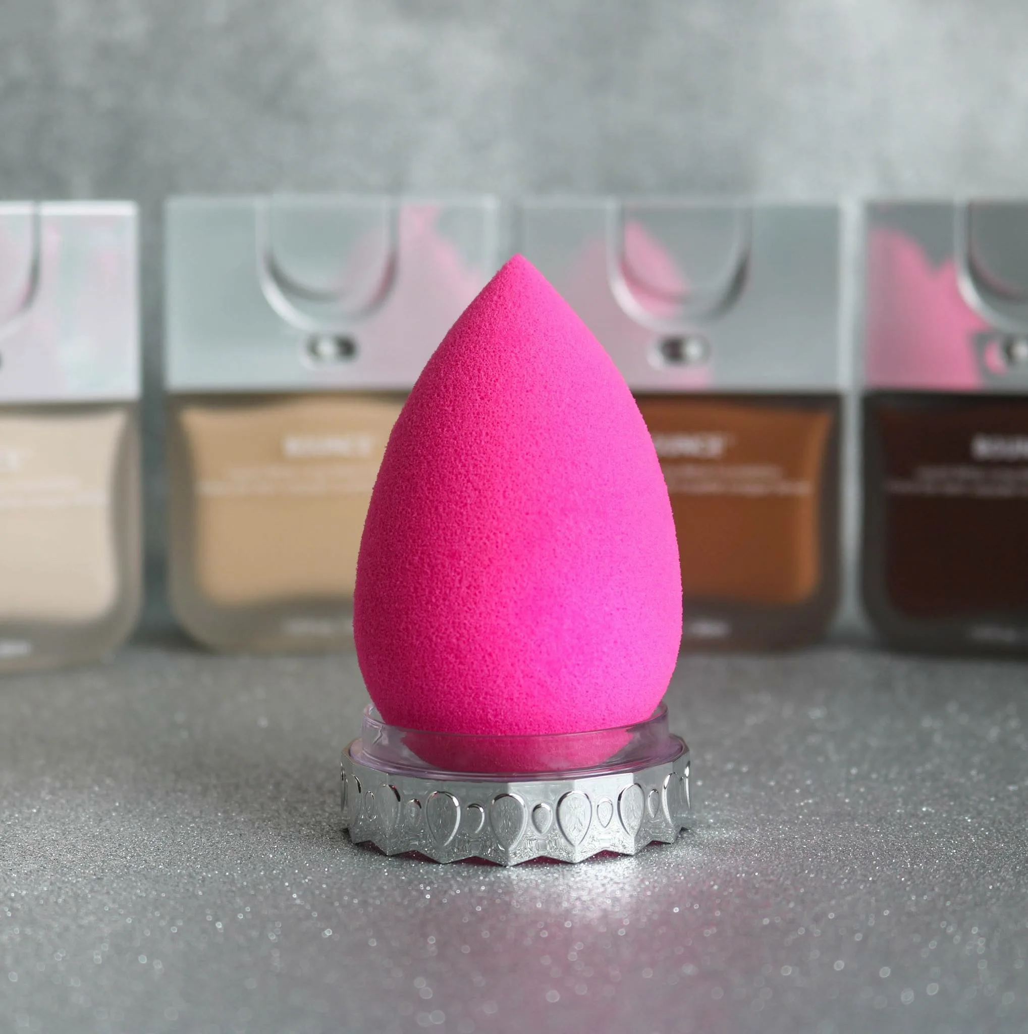 The aqua-activate sponge grows to about twice its size when wet, and absorbs minimal product so your favorite formula lands on your complexion—not your sponge. When wet, the super soft material provides an even, smooth blend and bounce. The large, rounded surface area ensures a quick application while the contoured tip offers precision.