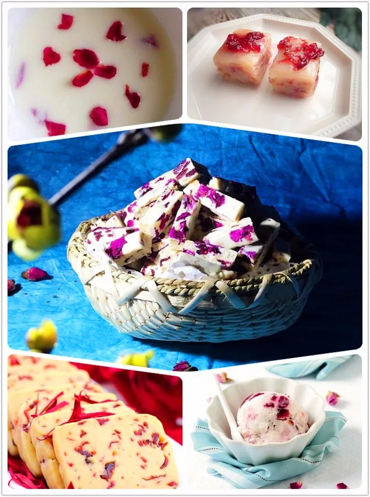 The edible rose petals can be used as the material for various delicious food, like rose icecream, rose yogurt, rose cakes, rose cookies, rose nougat etc. Besides the beautiful appearence and the rich aroma, the rose rugosa cv. plena has excellent health and beauty care functions: