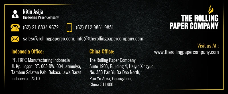 At The Rolling Paper Company, we represent The Best Rolling Papers out of Asia. From the time we make contact to the point you get your papers in your hand, we will look after you in every aspect of the design as well as the process.