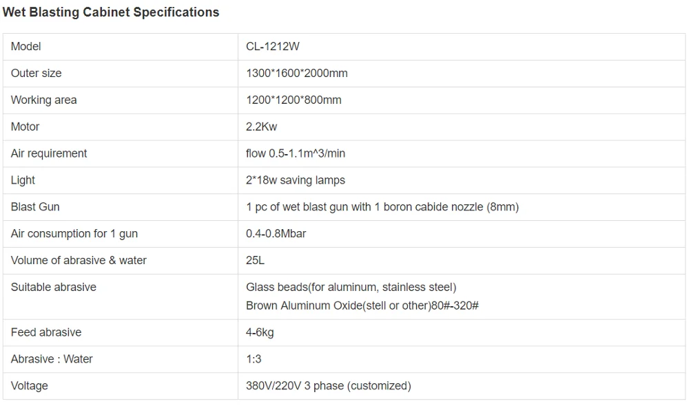 >The wet blasting cabinet is Simple structure, requires less maintenance.
