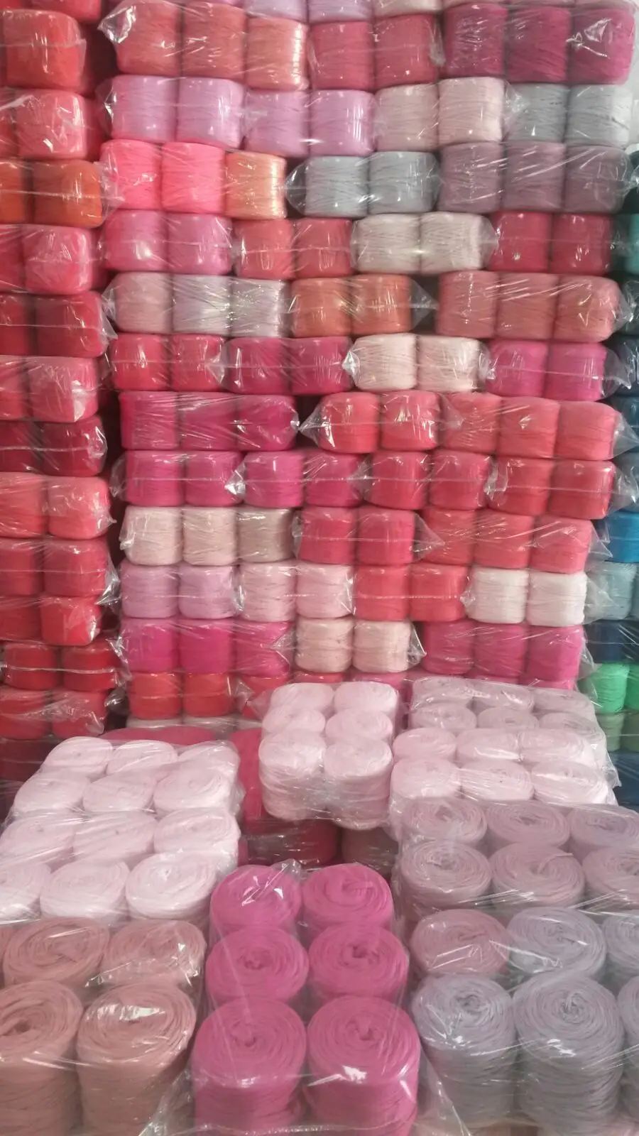 A giant bobbin of original Maccaroni Tshirt Yarn contains 120 meters and available in many colours as per photos.
