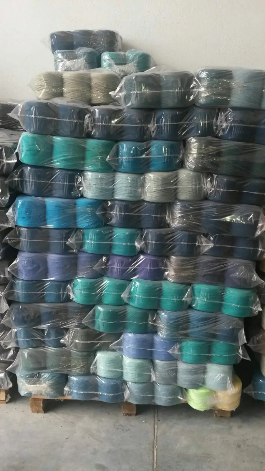 The composition of most Maccaroni is cotton with a small percentage elasthane. Our yarns are 98% cotton 2% elasthane. Our general bobbin sizes are 14x14 cm with 120-130 meters and weight between 650-700 grams.