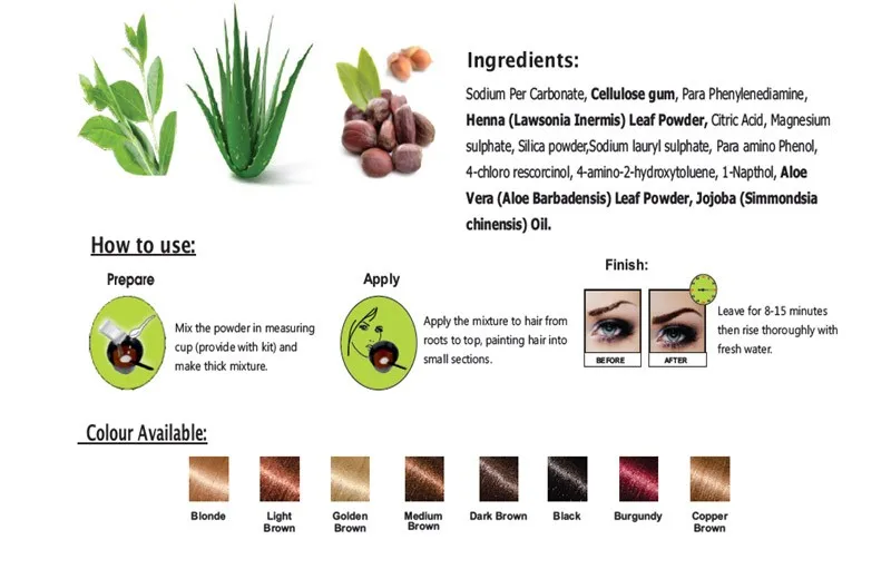 8 great color shades of Mina Ibrow Henna Starter Kit to choose! From Black, Dark Brown.......