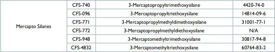 CFS-740, 3-Mercaptopropyltrimethoxysilane is a functional silane with a hydrolysable methoxy group and a reactive mercapto group. Its bifunctionality allows CFS-740 to promote the adhesion between organic materials and inorganic substrates. CFS-740 is mainly used in tires and silicone rubbers as a surface modifier and an adhesion promoter. It is the equivalent of Momentive Silquest A-189 or ShinEtsu KBM-803. It is also known as KH-590 in Chinese market.