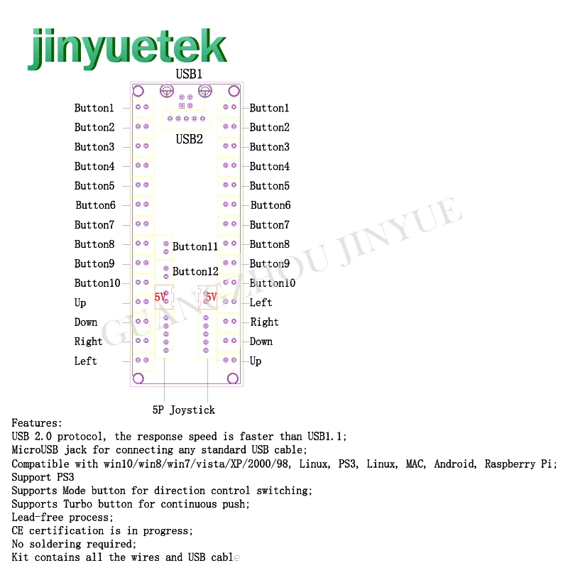 Jinyuetek cheap price pcb board usb raspberry kit diy arcade kit jamma